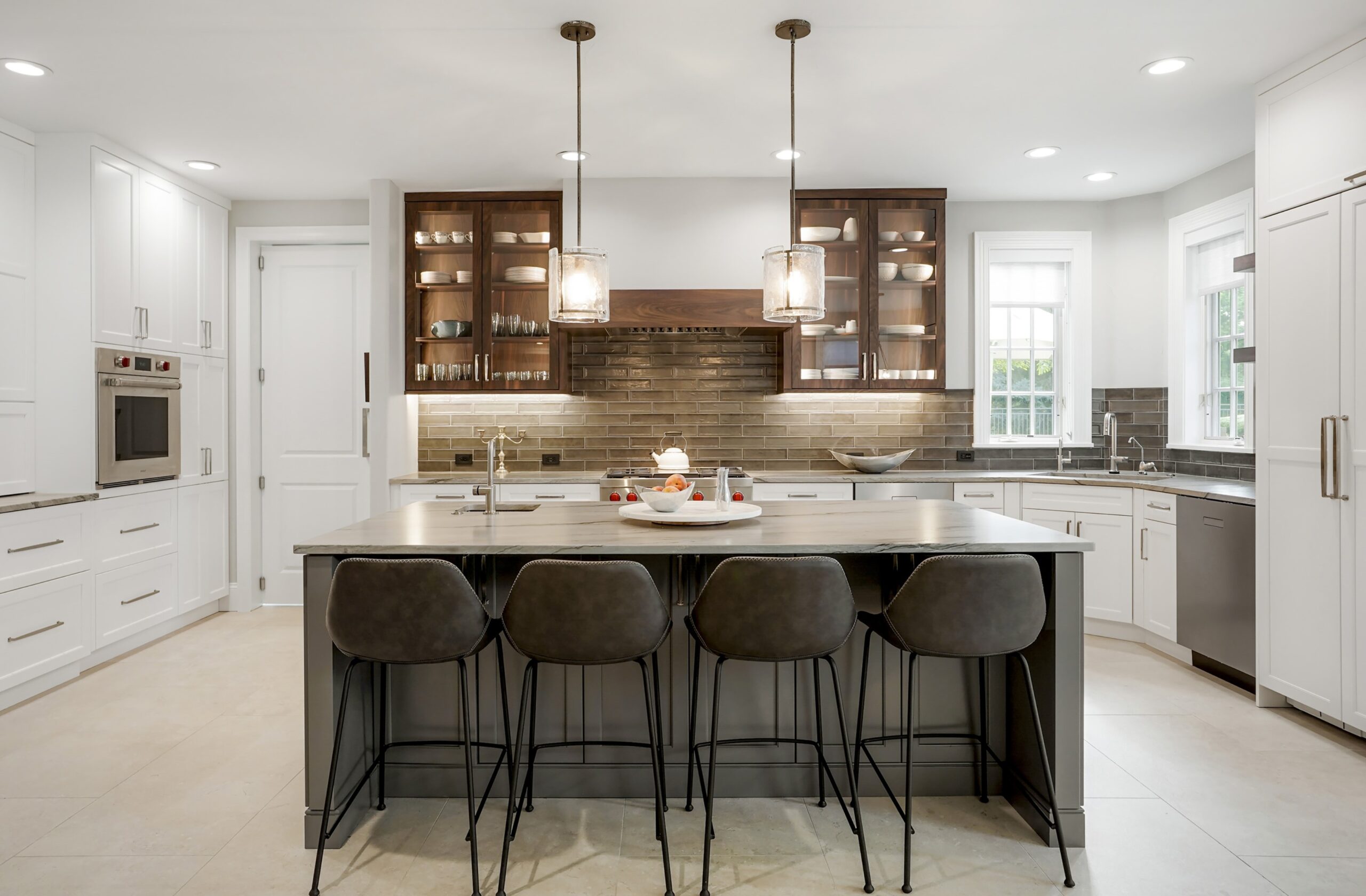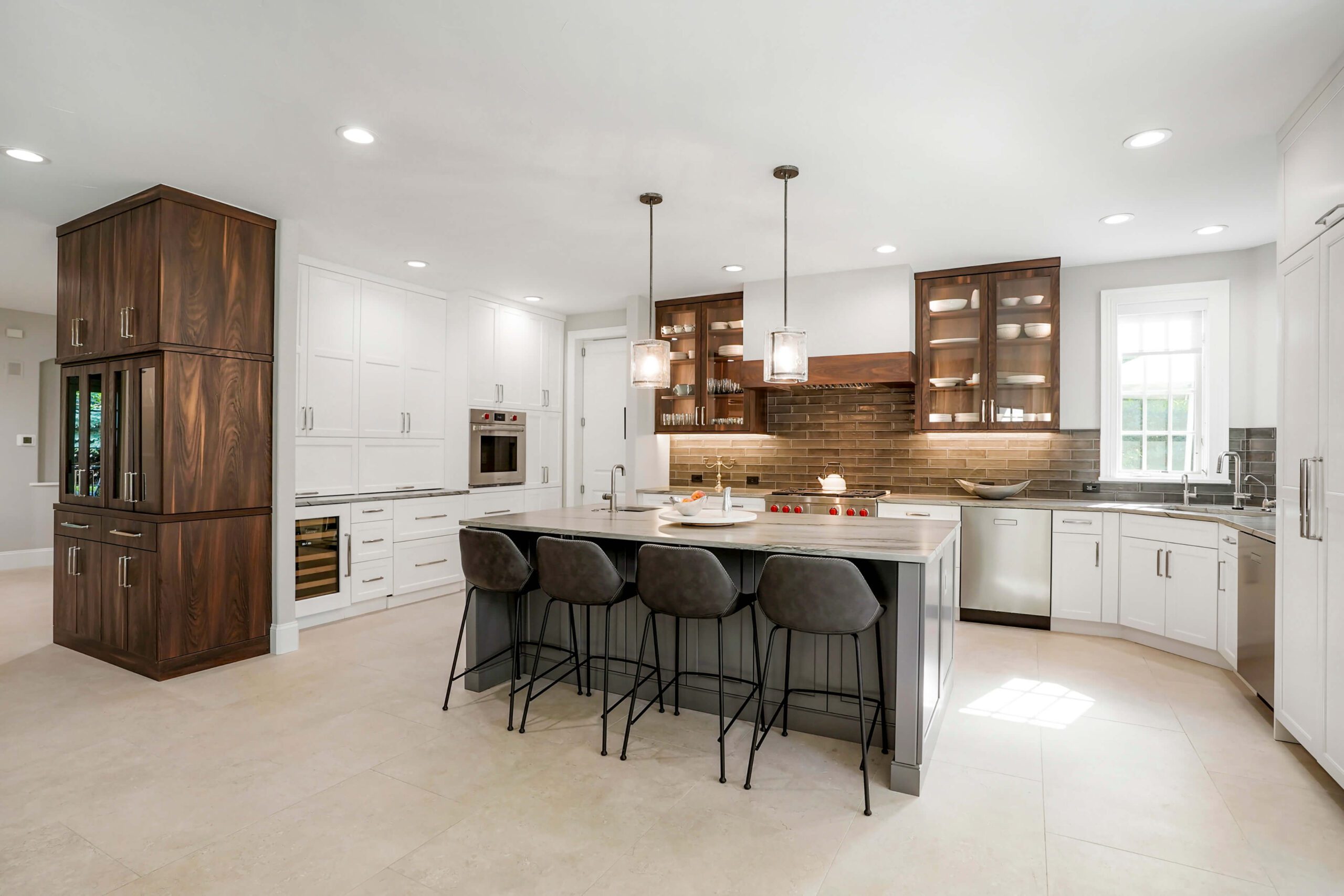 This kitchen renovation was a remarkable transformation, turning a once cramped and dull area into a stunning, spacious, and welcoming space. The original kitchen in this 6,000-square-foot home was tucked away in a corner like an after-thought. Our objective was to create an open-concept area that harmonized with the whole house and met the client’s desire for a functional and inviting space suitable for working and hosting. To achieve this, we removed an unnecessary wall and integrated an expansive workspace. We also blended three distinct colors – shades of white, warm wood tones, and tasteful greys – to infuse the space with character and coziness while maintaining its brightness.