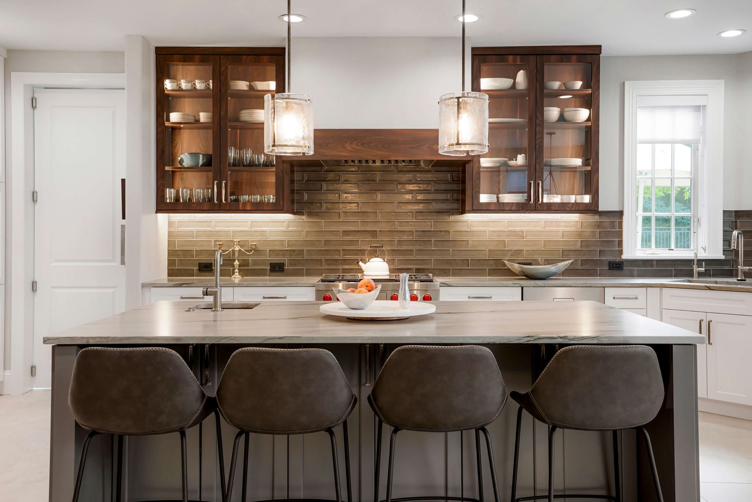 The result was a resounding success – a stark departure from the outdated, cramped kitchen that it once was. The rich wood tones bring a sense of natural beauty to the space, while the seamless integration of panel-ready appliances adds a final touch of sleek sophistication. Our favorite aspect of this project was the creativity and thoughtfulness put into every detail, right down to the matching wood surrounding the updated hood. Combined with the compelling trio of colors, this design creates a welcoming atmosphere that perfectly pairs with the adjacent family and dining rooms.